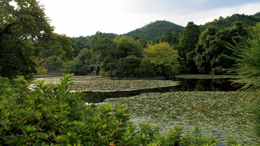 Ryoan-ji cuenta con hermosos jardines con mucha vegetación. En verano, las flores de colores combinan con los árboles. También cuenta con un pequeño lago donde podrás ver tortugas y peces koi.