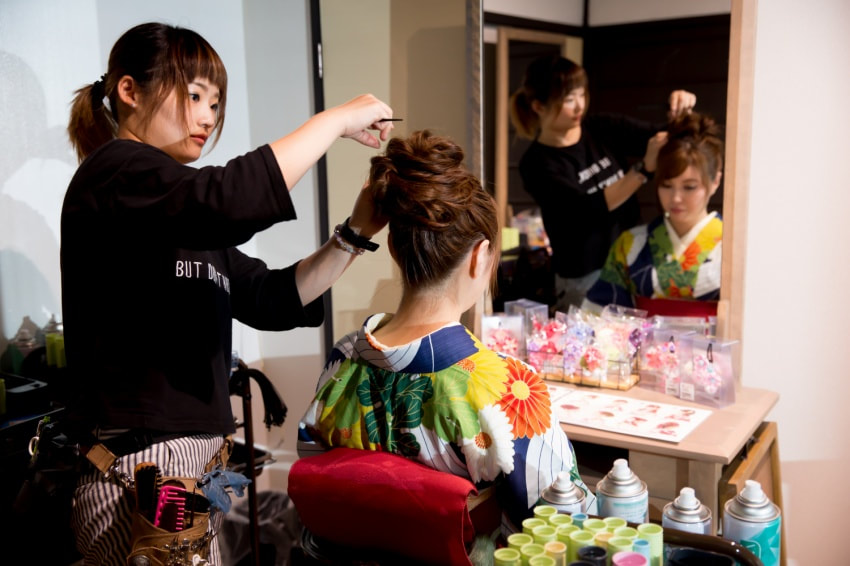 R: De forma bastante sencilla. Tanto la sucursal de Gojo como la de Oike Bettei ofrecen estos servicios, aunque cada tienda lo hace a su manera. Por ejemplo, en Gojo las sesiones tienen lugar en un estudio, a precios asequibles y con rapidez, mientras que si queremos algo más tradicional, el ambiente de la tienda de Oike Bettei, con sus tatamis y su jardín, es justo lo que buscamos. Pero si lo que nos interesa es contratar una sesión en varios de los puntos más icónicos de Kioto, ¡también podemos!