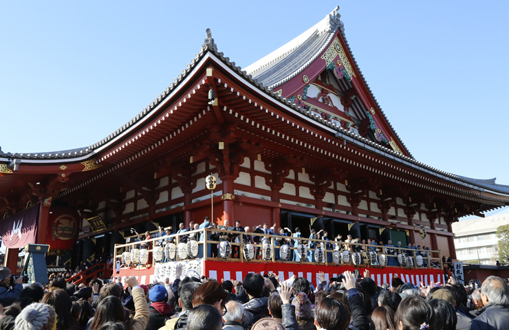 - Templo Senso-ji (Tokio): Uno de los más famosos, donde actores y luchadores de sumo participan en la ceremonia.