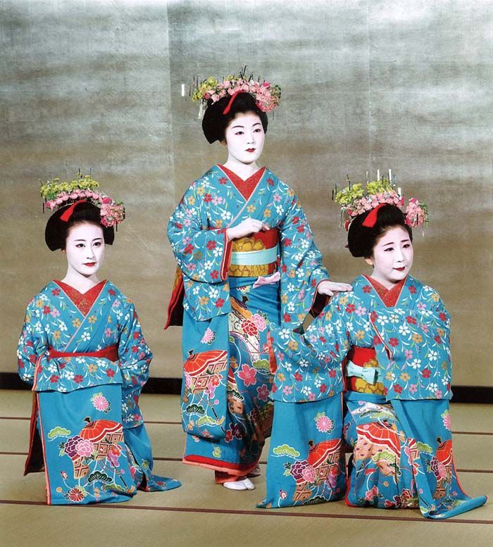 Aquí encontraremos maikos y geishas, quienes están vestidas con exquisitos kimonos de seda y adornadas con elaborados peinados y accesorios, interpretan coreografías que narran historias sobre la naturaleza, el amor y la vida en la antigua Kioto.