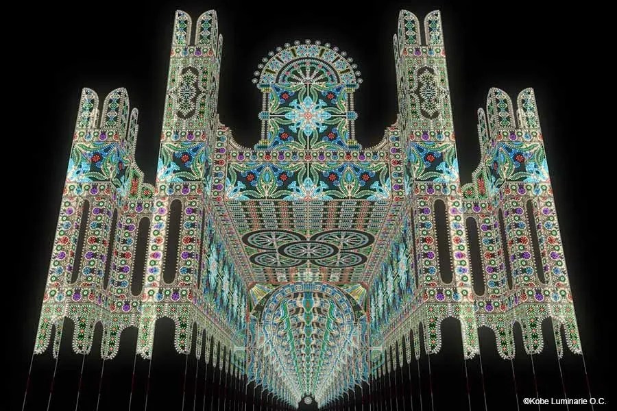 Asimismo, las principales calles del centro de Kobe se convierten en un recorrido luminoso cuidadosamente organizado. Arcos gigantes, pasillos de luz y estructuras que recuerdan a catedrales europeas crean un ambiente único que invita a pasear con calma.